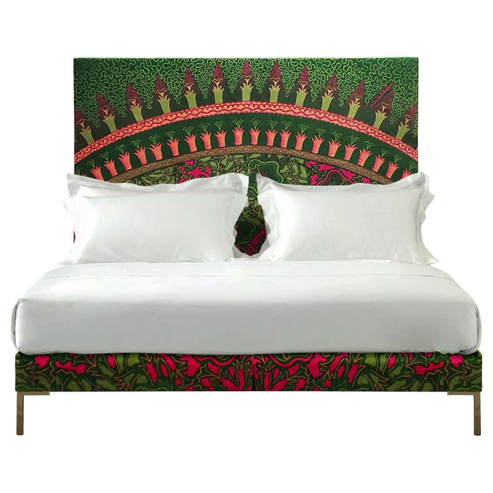 Search-Friendly Keywords: Luxury Art Nouveau Bed, Eclectic bedroom furniture, Customizable headboard bed, Bold floral designer bed, Green velvet upholstered bed, Modern box bed with fabric headboard, Boho Chic Art Deco bed, Artistic bed with bold patterns