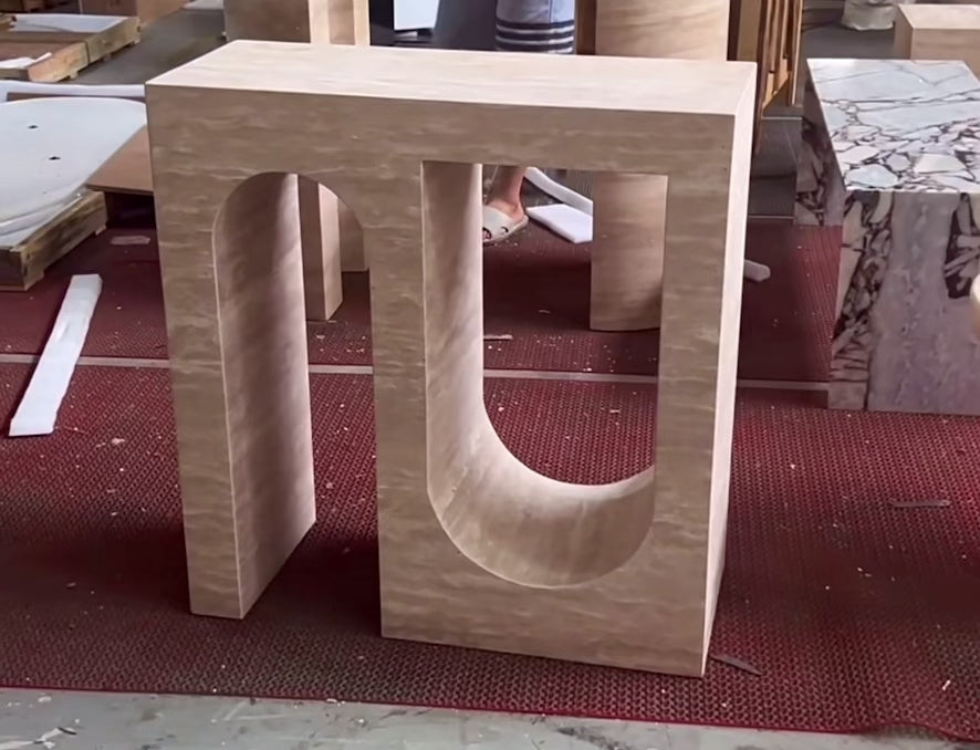 Crafted from natural stone, this architectural console table is a testament to minimalist elegance. The interplay of solid geometry and fluid curves makes it a timeless sculptural statement for contemporary interiors.