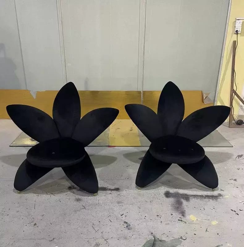 Bring whimsy and bold design to your space with this flower-shaped velvet lounge chair, a true statement piece. Upholstered in luxurious deep blue velvet, its petal-like cushions form a sculptural yet cozy seating experience, blending comfort with artistic expression.